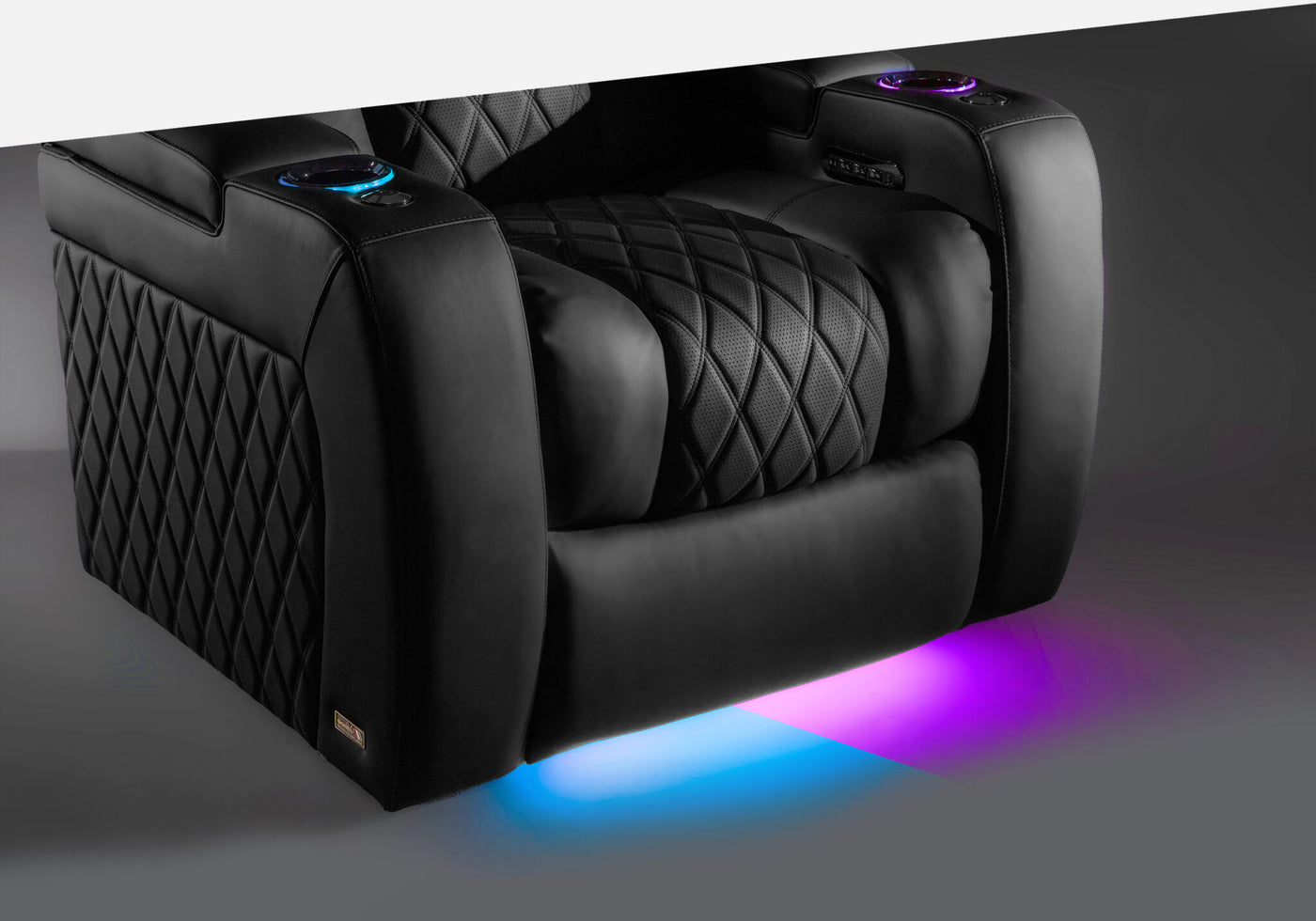 Introducing the 2025 Ultimate Luxury Edition, the pinnacle of home theater seating. Immerse yourself in luxury with Semi-Aniline Italian Nappa leather 20000, a step above our premium top grain Nappa 11000 leather. The smooth buttery matte finish is unwavering in its perfection and luxe appeal. Parallel to the rich aesthetic of a Bentley’s interior, the perforated leather and French diamond stitching offers high breathability for optimal performance. Exceptionally crafted to enhance your home’s luxury factor, the detailed design elevates the elegance of your home theater.