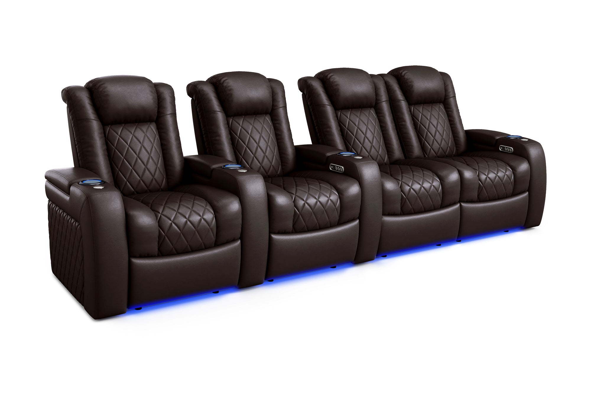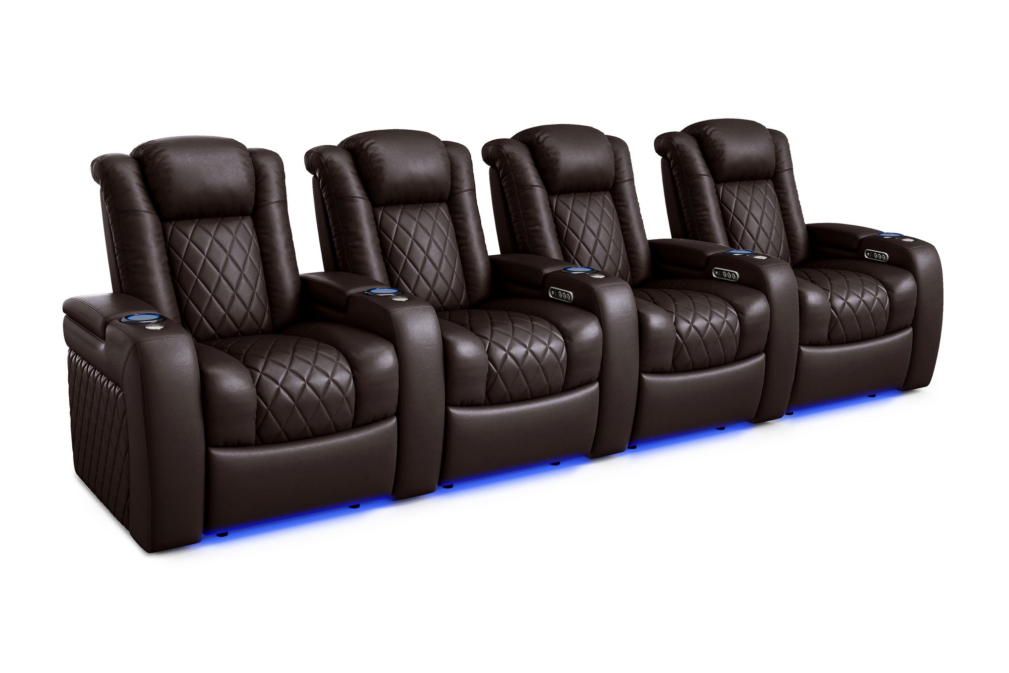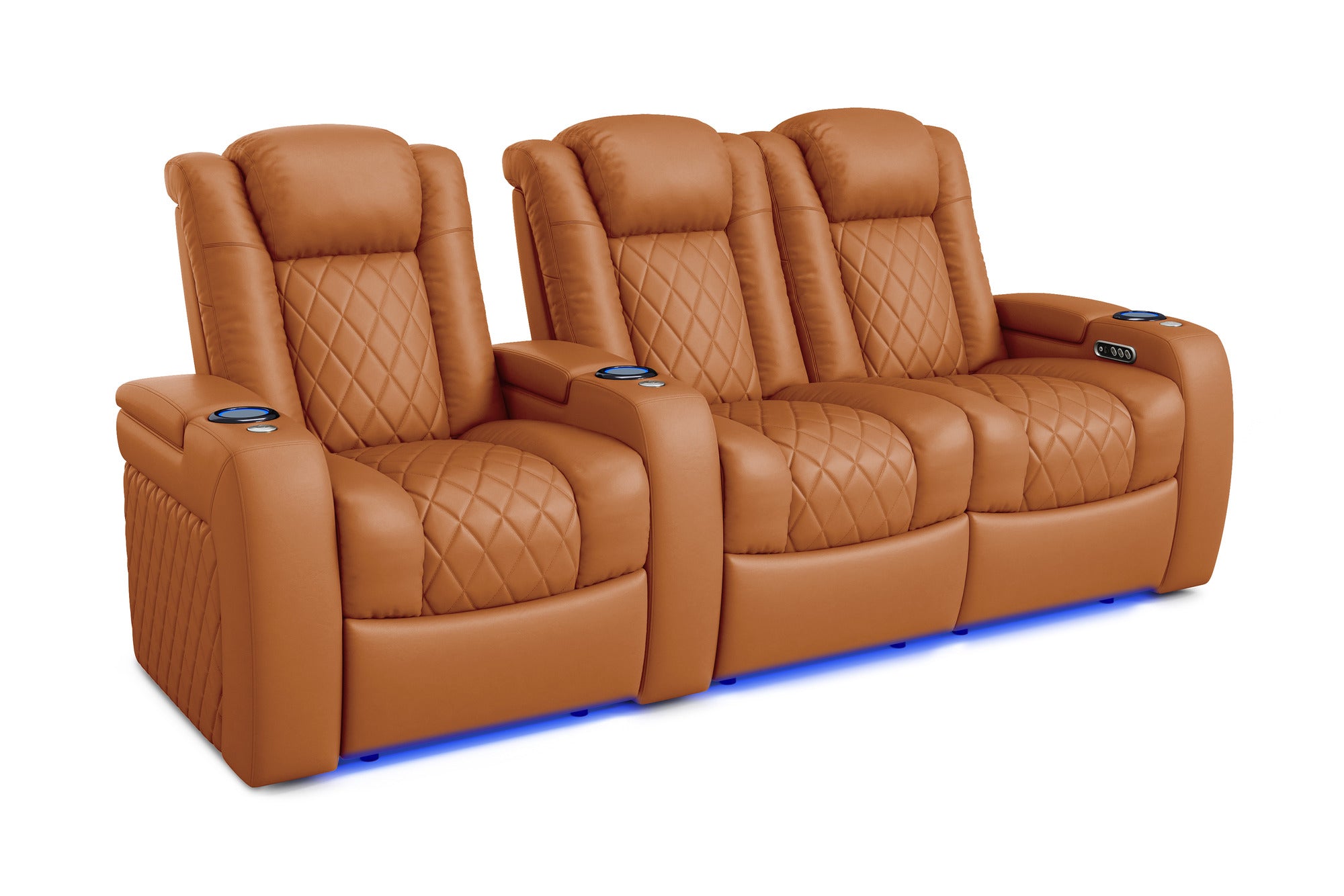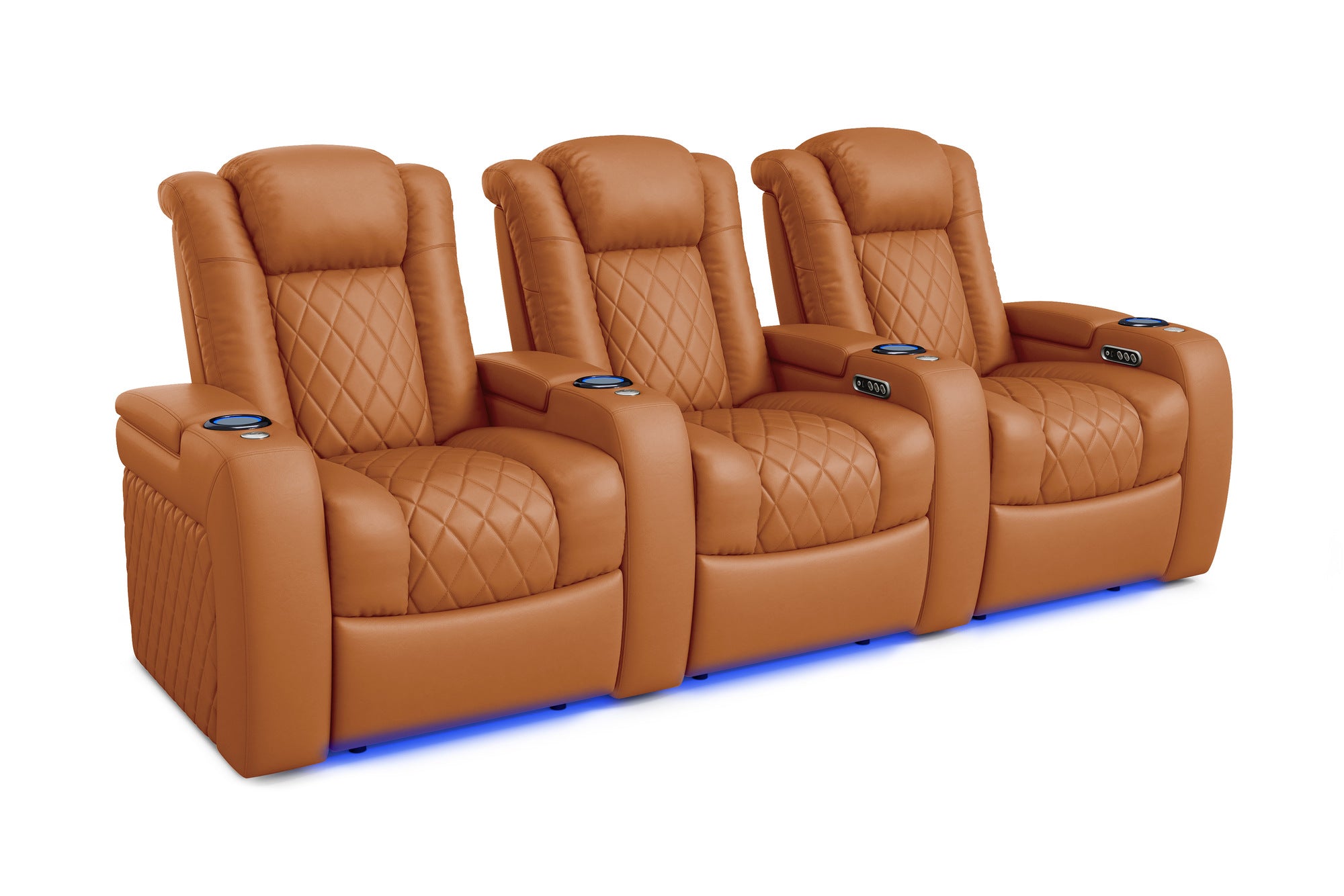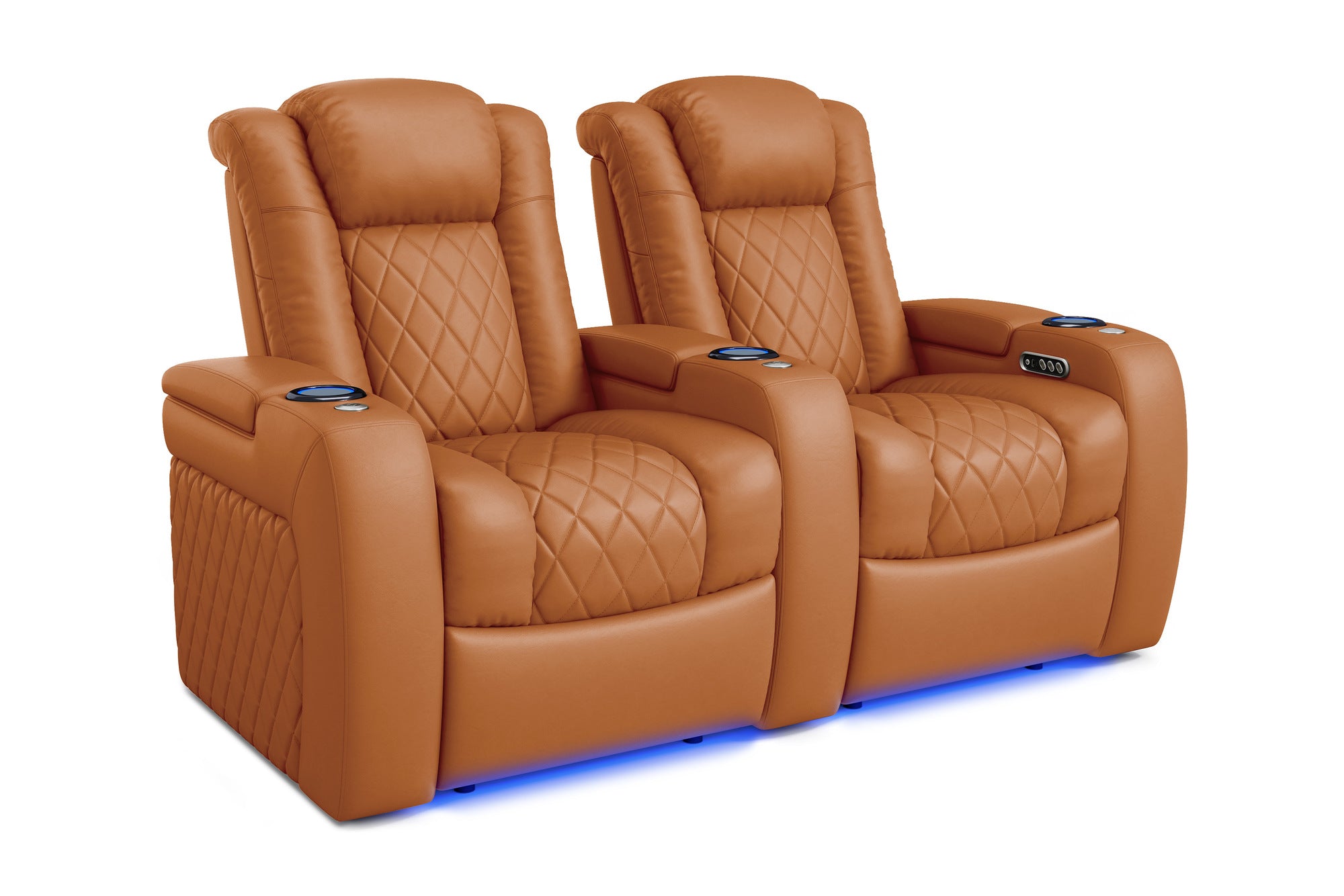 Introducing the 2025 Version of Our Best-Selling Tuscany Home Theater Seating! Upgrade your home theater with the brand new Tuscany 2025 with upgraded technology and cutting-edge comfort, A perfect blend of luxury, style, and comfort. Designed for unmatched relaxation, this premium recliner is crafted with new imported Top-Grain Italian Nappa leather 11000 on all seating surfaces, offering a smooth and elegant touch. Enjoy immersive movie nights with new RGB cup holders with ambient base lighting, and a motorized reclining system that lets you find your perfect seating position effortlessly. The newly upgraded Tuscany now features deeper hidden arm storage, perfect for keeping your accessories close at hand. Plus, an air piston-assisted storage lid ensures smooth and safe operation. Our tactile button control system replaces traditional soft-touch buttons, allowing you to activate all functions simultaneously for an enhanced experience.