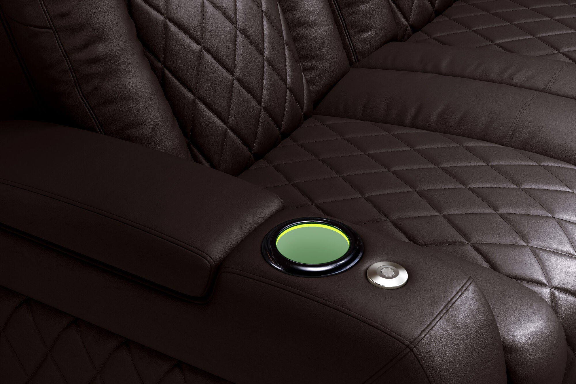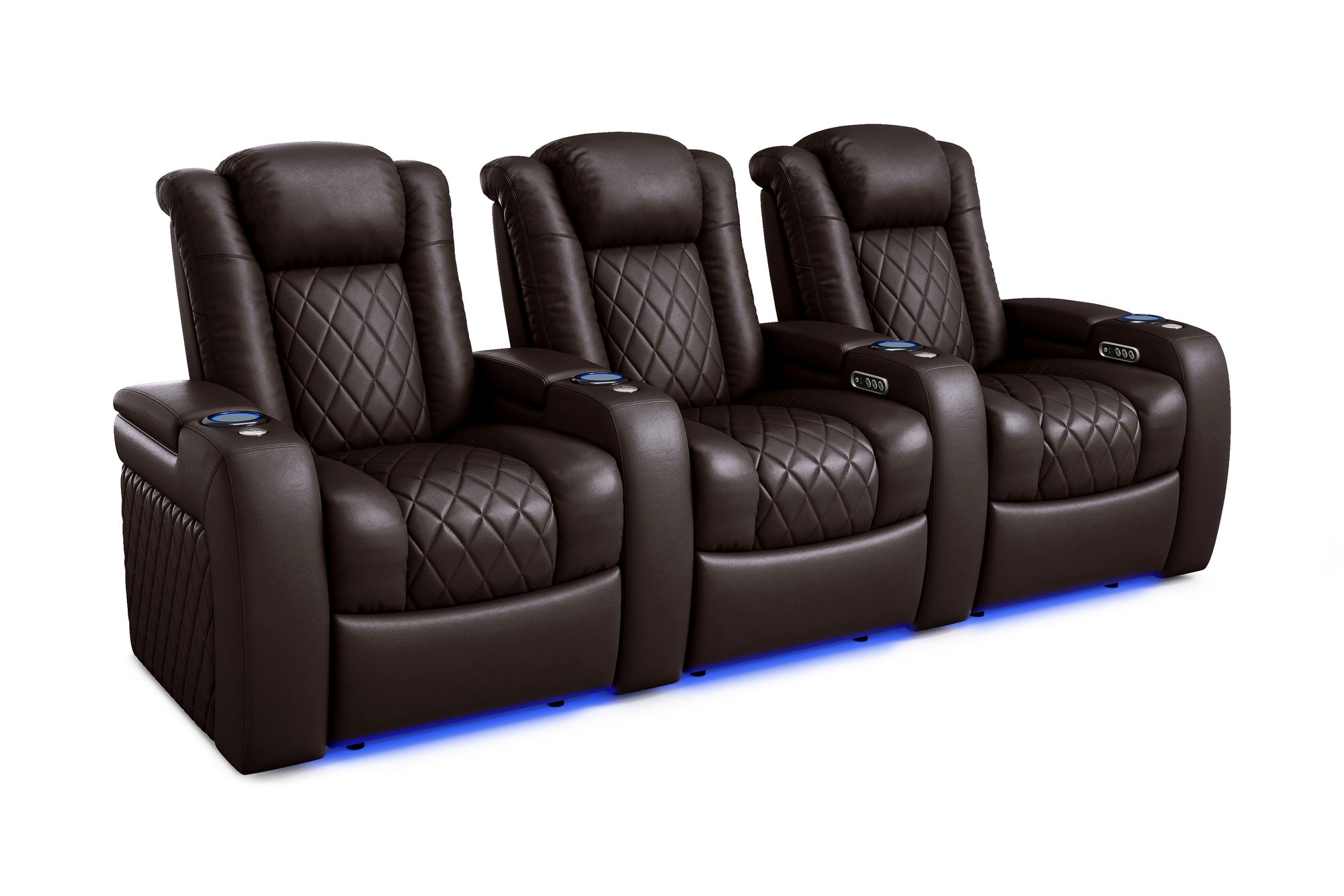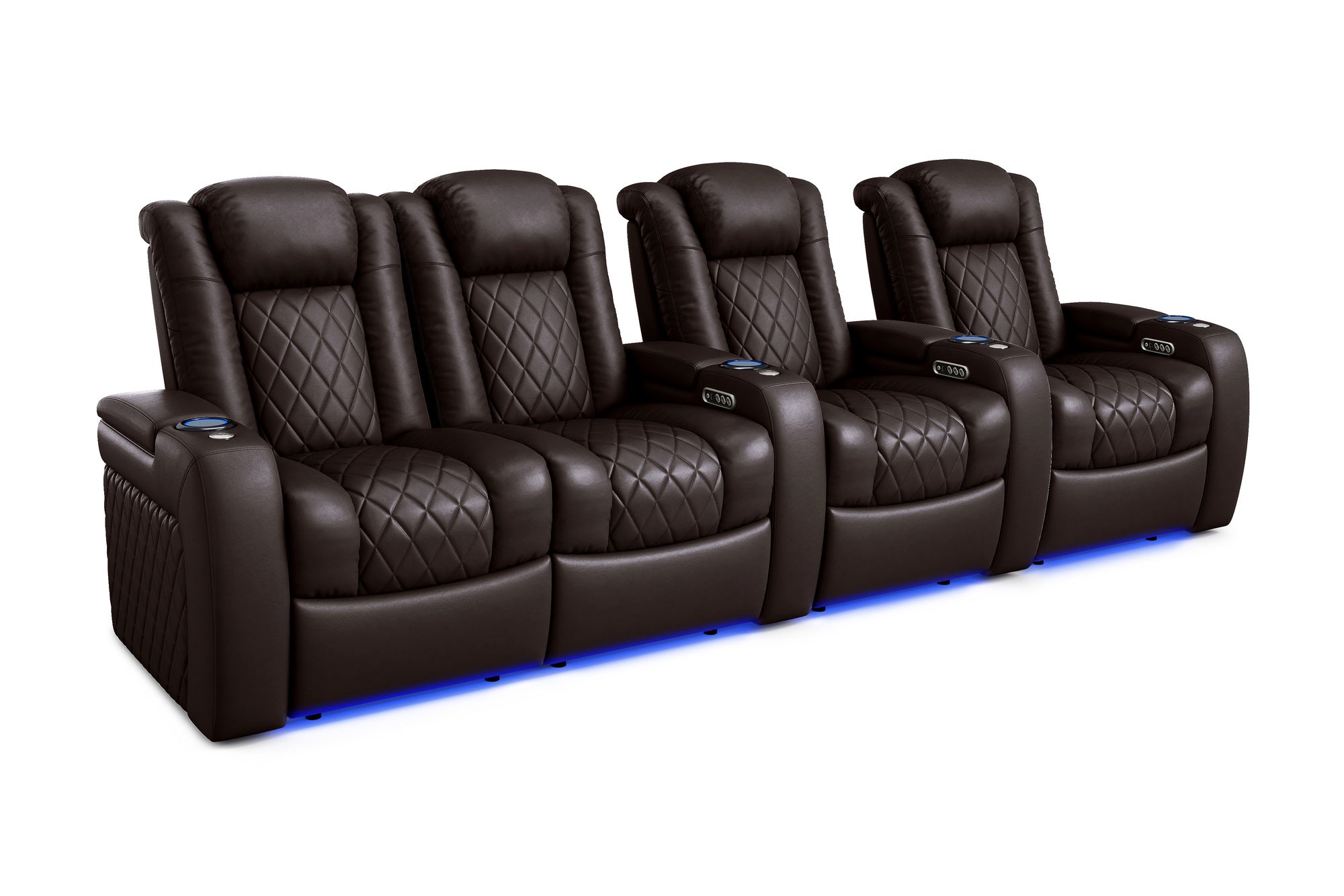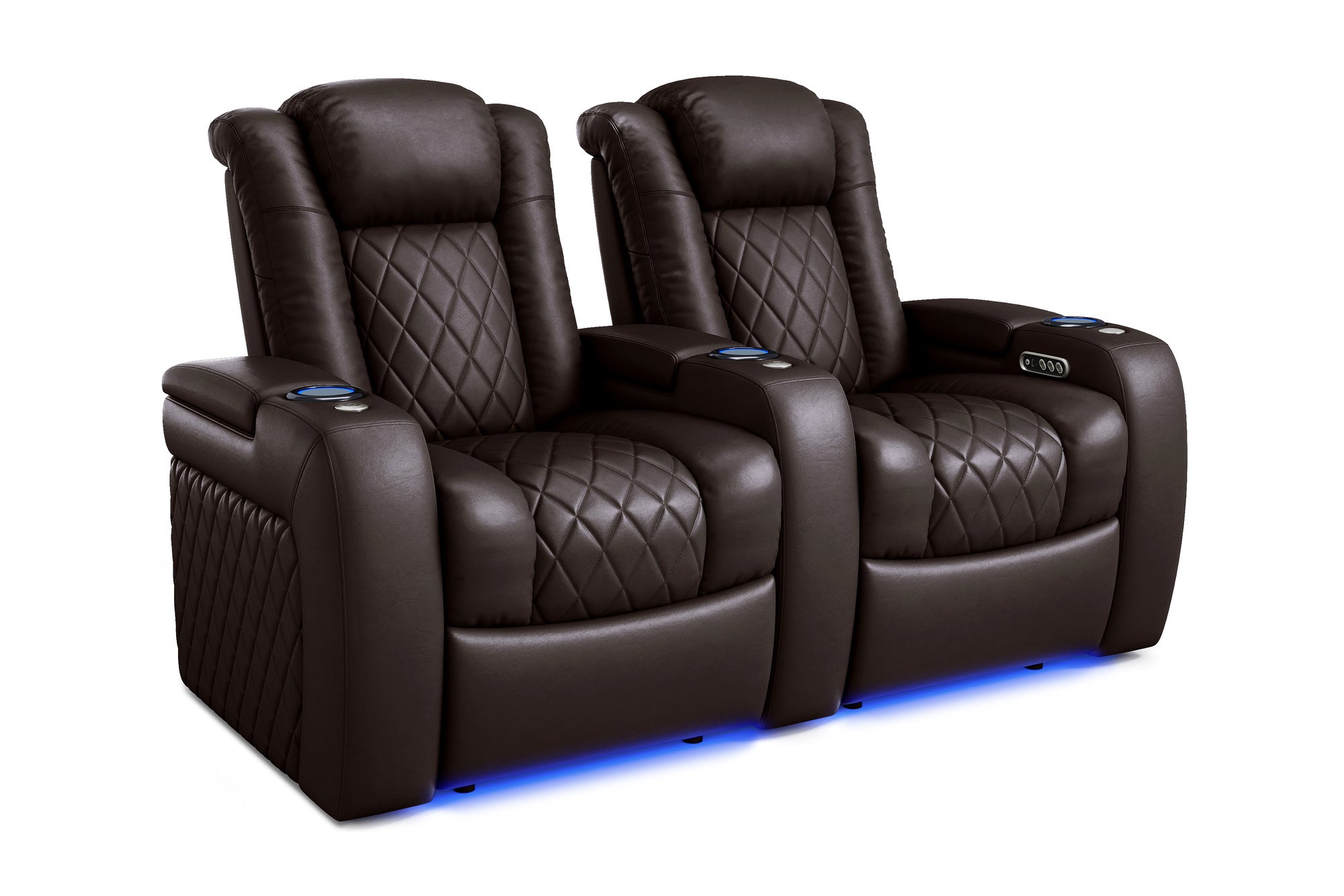 Introducing the 2025 Version of Our Best-Selling Tuscany Home Theater Seating! Upgrade your home theater with the brand new Tuscany 2025 with upgraded technology and cutting-edge comfort, A perfect blend of luxury, style, and comfort. Designed for unmatched relaxation, this premium recliner is crafted with new imported Top-Grain Italian Nappa leather 11000 on all seating surfaces, offering a smooth and elegant touch. Enjoy immersive movie nights with new RGB cup holders with ambient base lighting, and a motorized reclining system that lets you find your perfect seating position effortlessly. The newly upgraded Tuscany now features deeper hidden arm storage, perfect for keeping your accessories close at hand. Plus, an air piston-assisted storage lid ensures smooth and safe operation. Our tactile button control system replaces traditional soft-touch buttons, allowing you to activate all functions simultaneously for an enhanced experience.