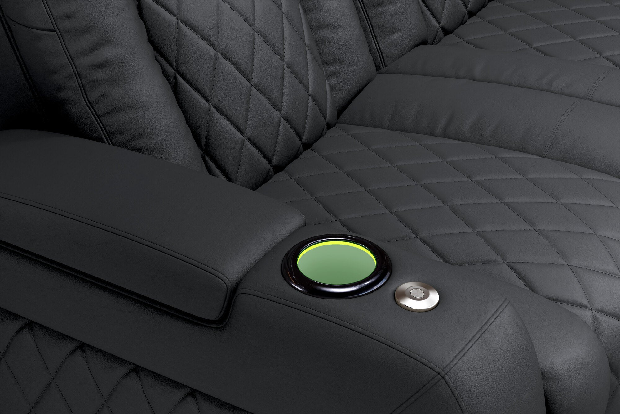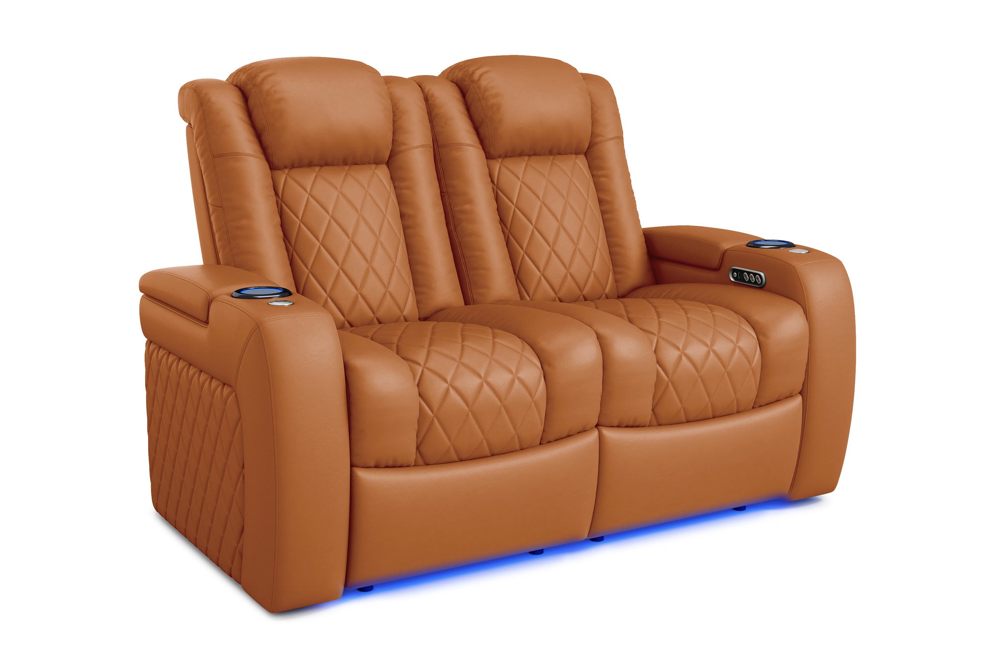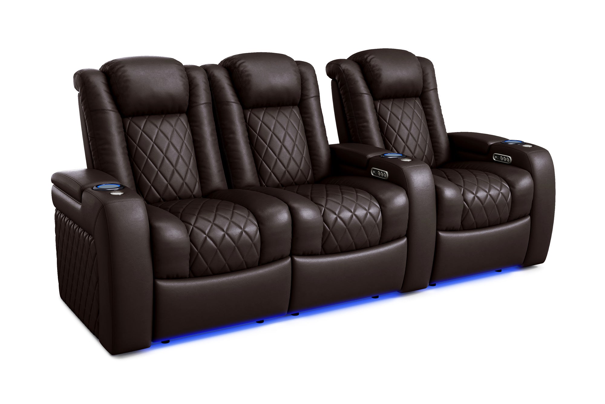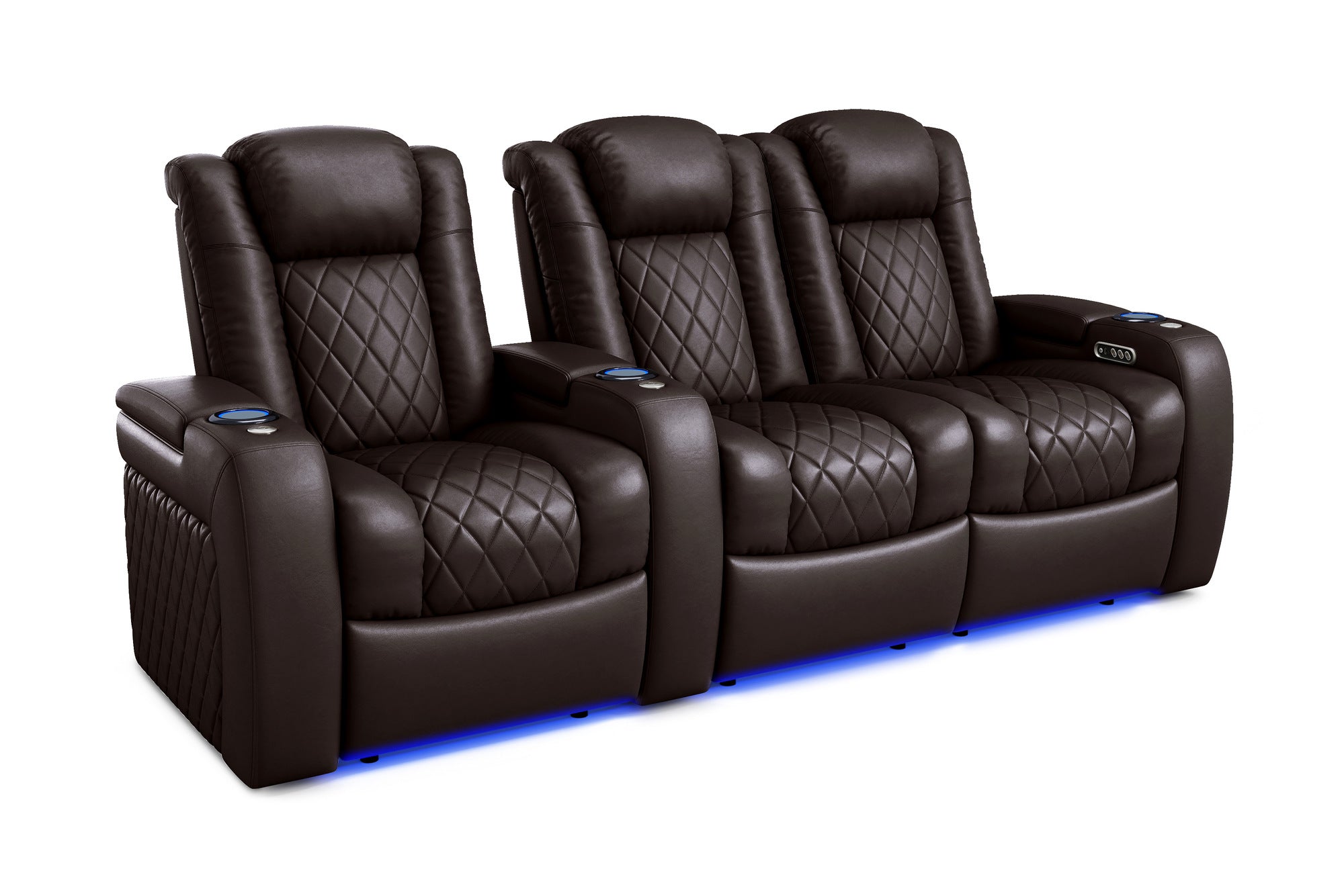 Introducing the 2025 Version of Our Best-Selling Tuscany Home Theater Seating! Upgrade your home theater with the brand new Tuscany 2025 with upgraded technology and cutting-edge comfort, A perfect blend of luxury, style, and comfort. Designed for unmatched relaxation, this premium recliner is crafted with new imported Top-Grain Italian Nappa leather 11000 on all seating surfaces, offering a smooth and elegant touch. Enjoy immersive movie nights with new RGB cup holders with ambient base lighting, and a motorized reclining system that lets you find your perfect seating position effortlessly. The newly upgraded Tuscany now features deeper hidden arm storage, perfect for keeping your accessories close at hand. Plus, an air piston-assisted storage lid ensures smooth and safe operation. Our tactile button control system replaces traditional soft-touch buttons, allowing you to activate all functions simultaneously for an enhanced experience.