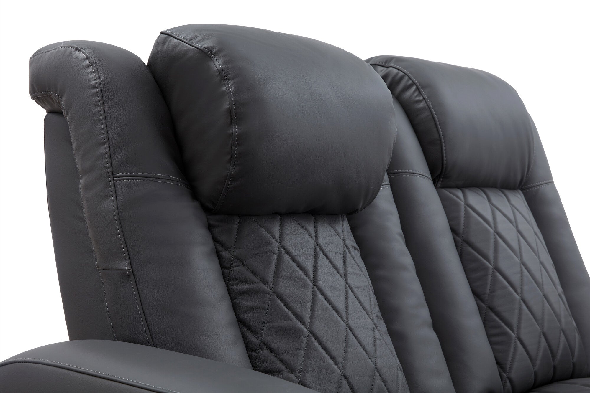 - Features power-adjustable lumbar support, headrest, and recline for personalized relaxation.