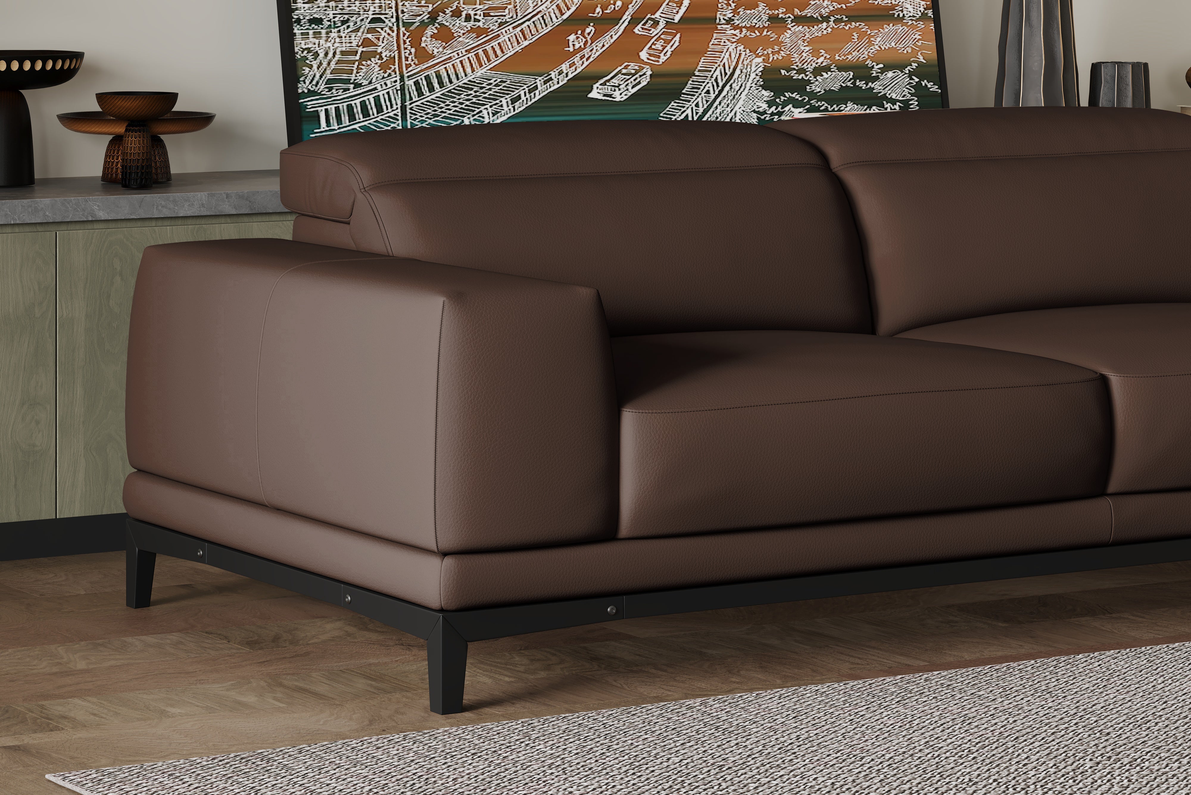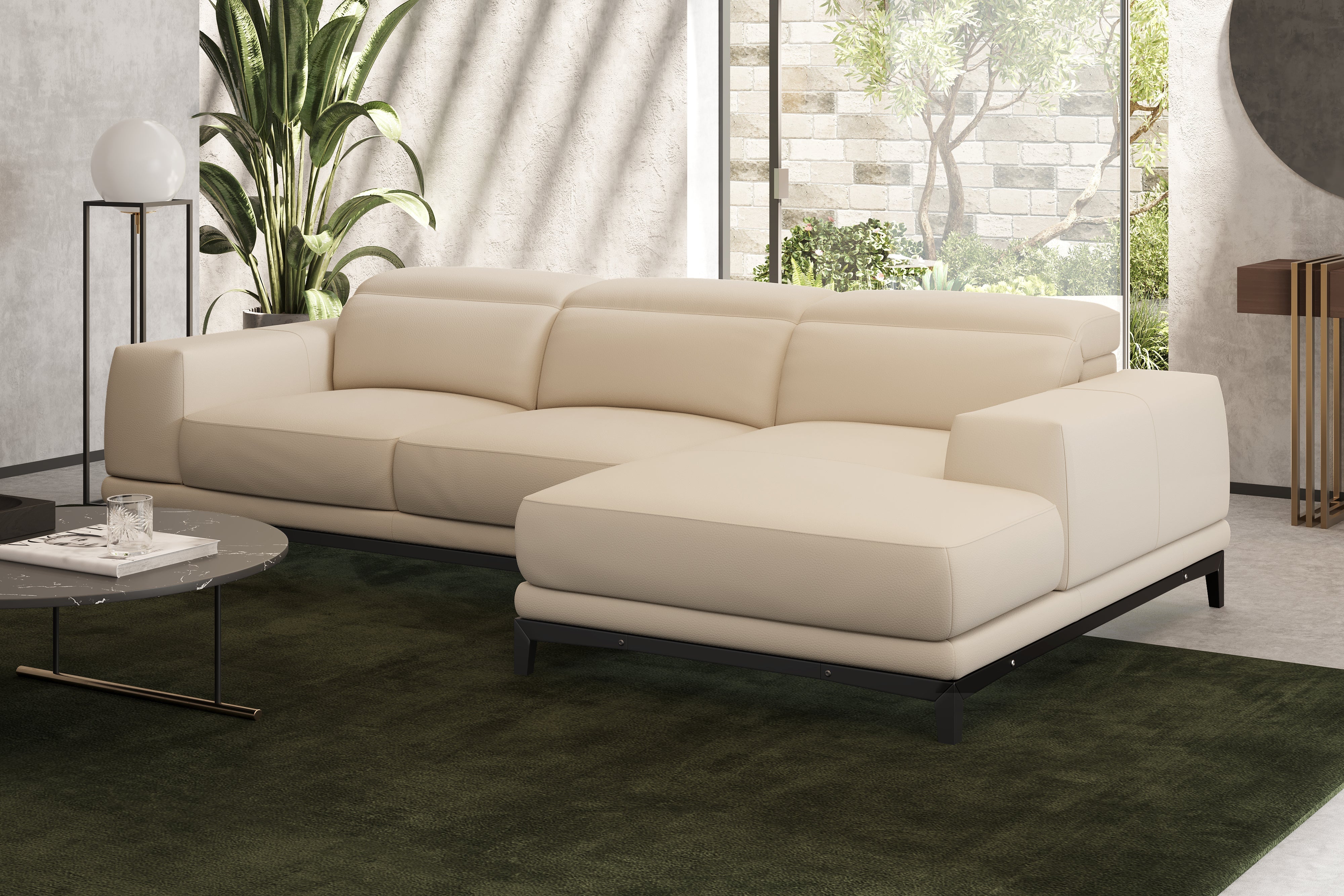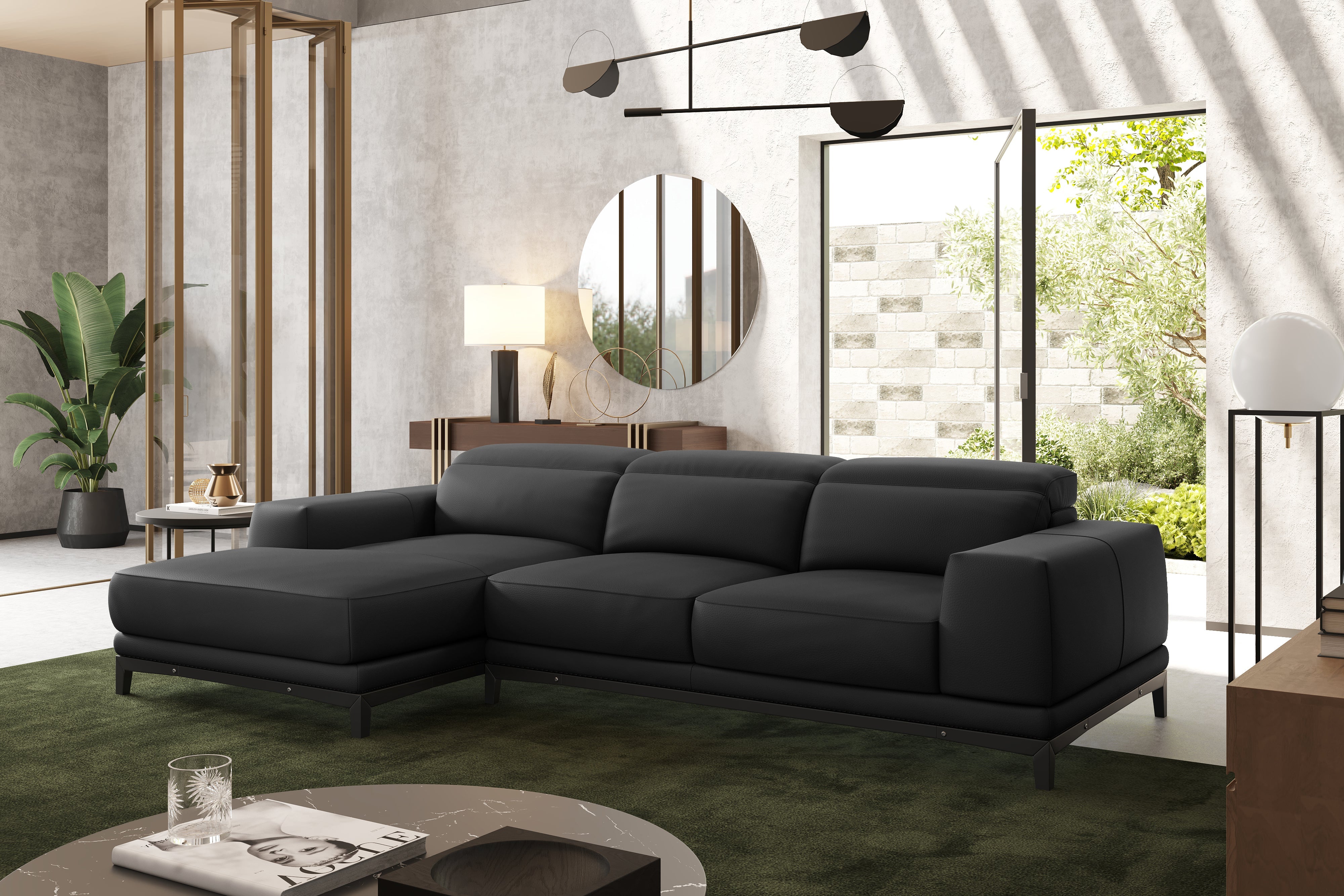 Refined stitching accentuates the sleek design, while the metal base adorned with metal studs adds a touch of sophistication. The manually adjustable headrests cater to personalized relaxation, allowing you to unwind in style. Elevate your living space with the Valletta Three Seats with Left Chaise Sofa—a harmonious blend of superior craftsmanship, opulent materials, and ergonomic design, delivering both aesthetic appeal and unmatched comfort.