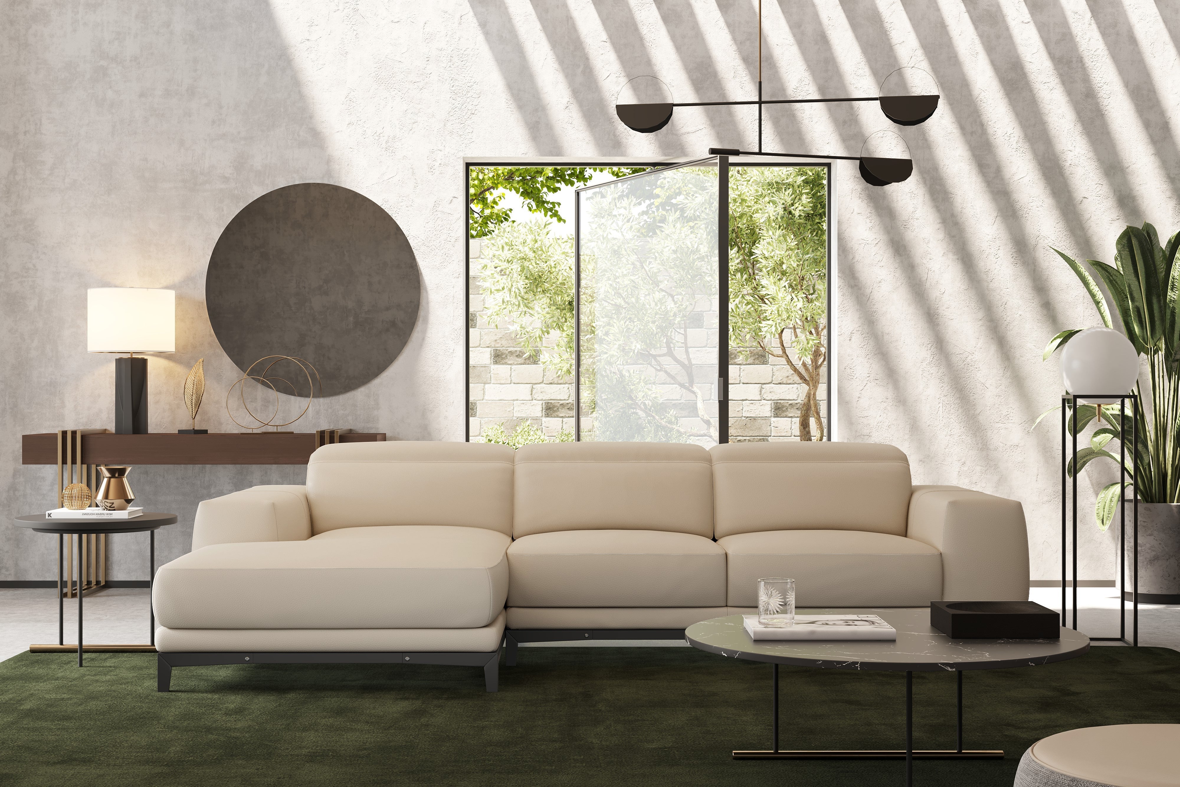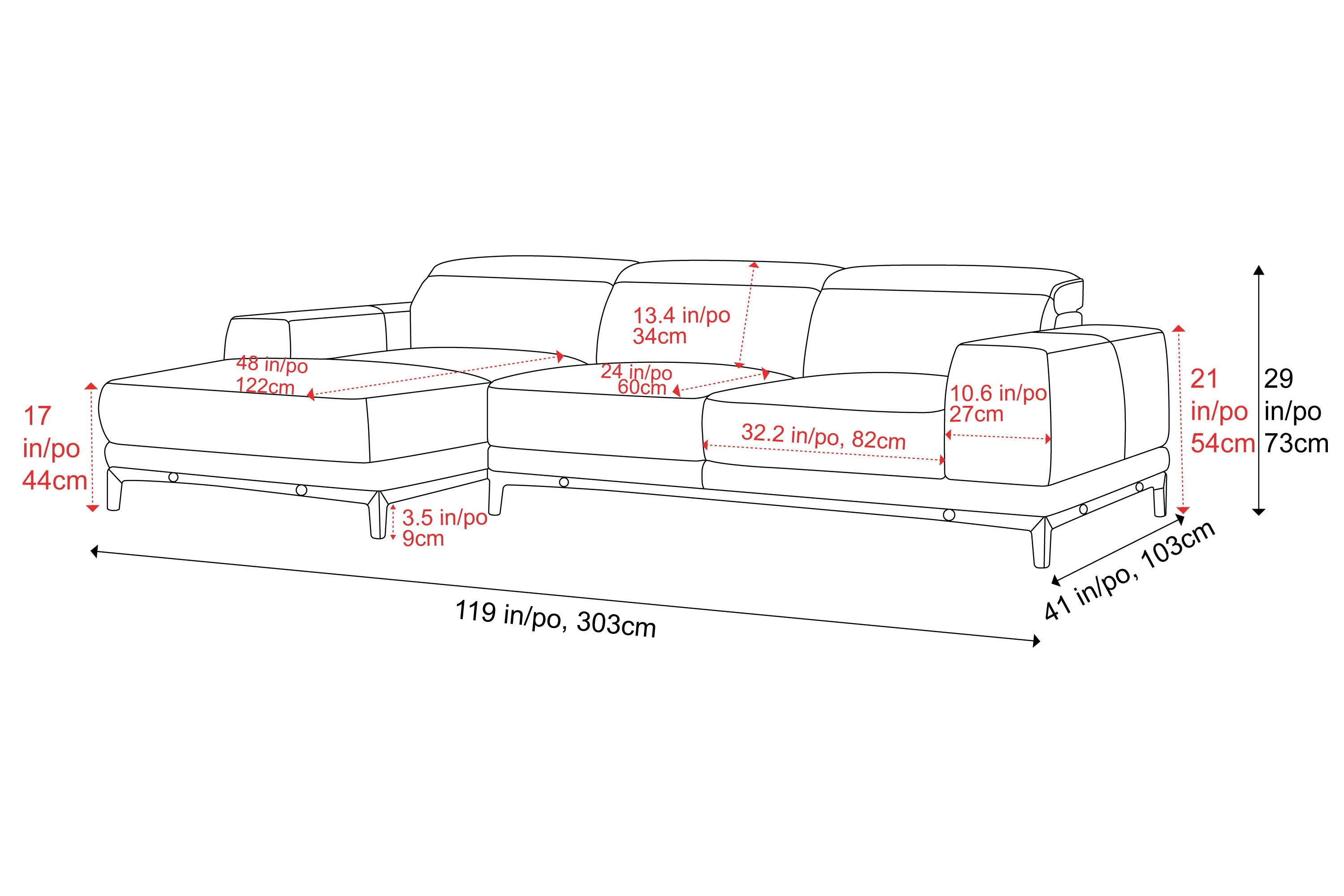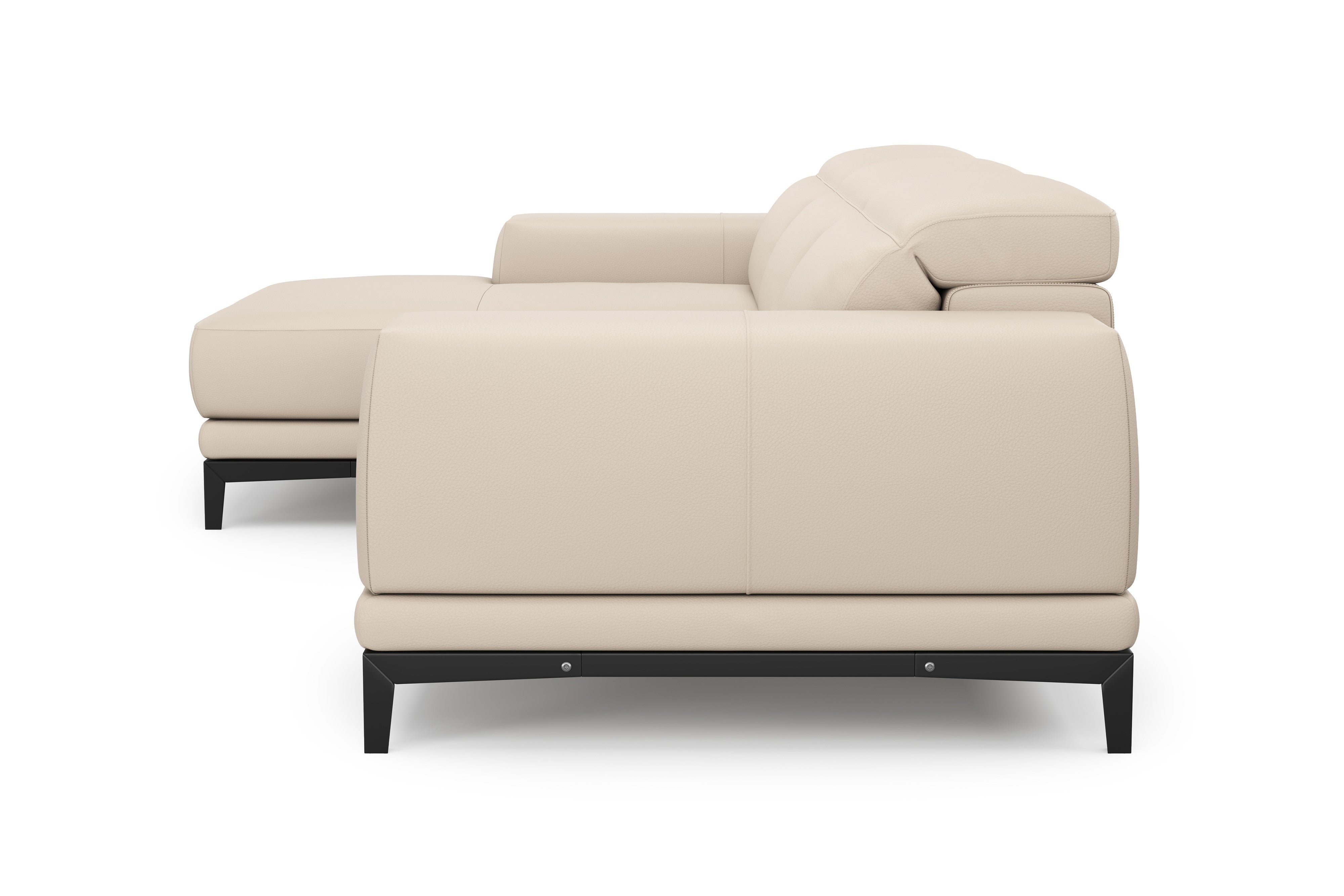 Refined stitching accentuates the sleek design, while the metal base adorned with metal studs adds a touch of sophistication. The manually adjustable headrests cater to personalized relaxation, allowing you to unwind in style. Elevate your living space with the Valletta Three Seats with Left Chaise Sofa—a harmonious blend of superior craftsmanship, opulent materials, and ergonomic design, delivering both aesthetic appeal and unmatched comfort.