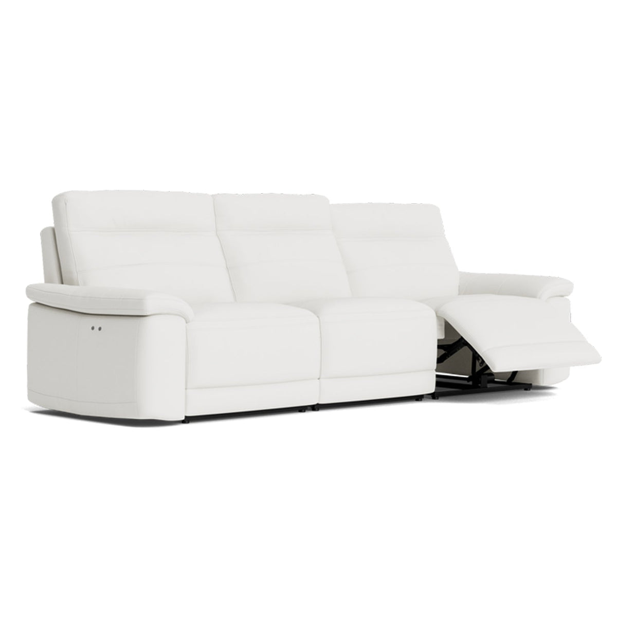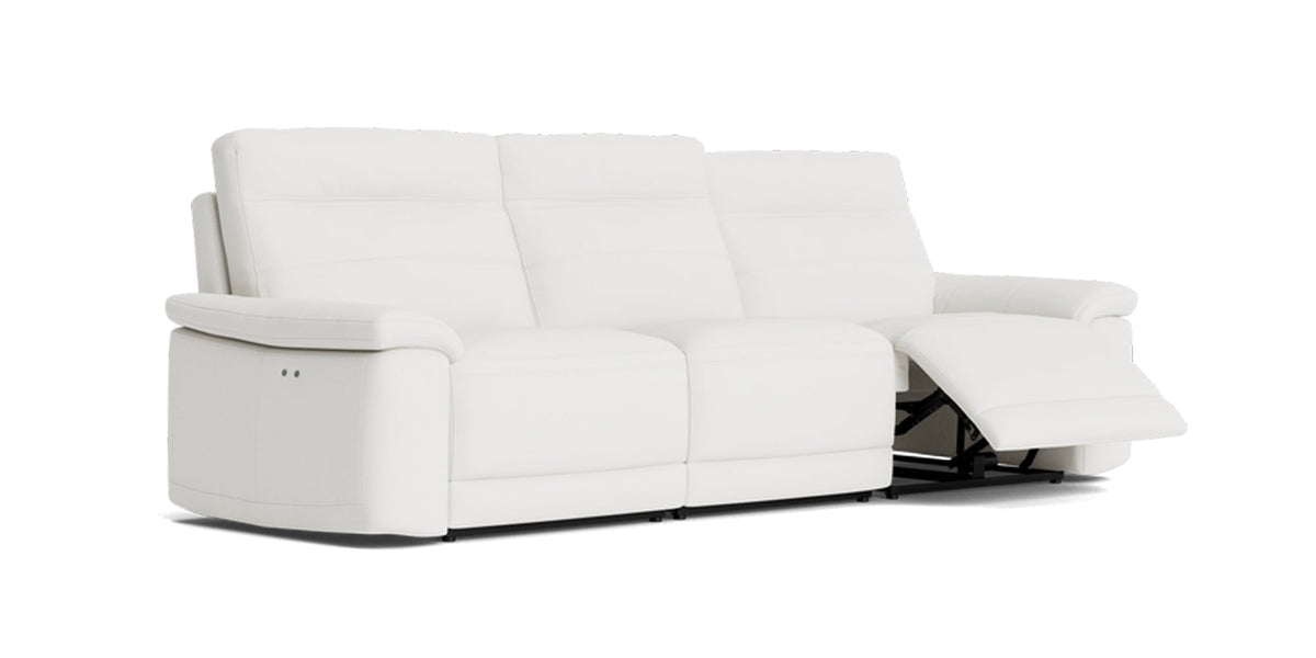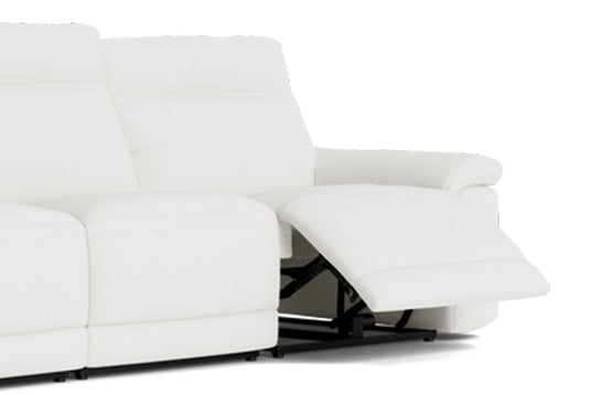 Indulge in the unparalleled luxury of the Vivian Leather Three Seats Sofa. Crafted to cater to various needs, this versatile piece effortlessly combines functionality with sophistication. Its sleek, modern design boasts broad-shaped arms accentuated by top-stitch seams, perfectly complementing contemporary living spaces. Experience ultimate comfort with the electric dual recliners, ensuring seamless operation. Upholstered in Italian Nappa 11000 Top Grain Leather on seating surfaces, this sofa embodies the ultimate in relaxation, combining elegance with unmatched comfort. Crafted with a Kiln Dried Hardwood frame and premium cushions, the Vivian sofa is a statement of enduring quality and style.